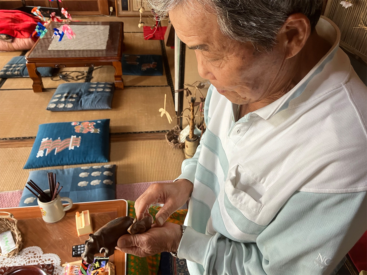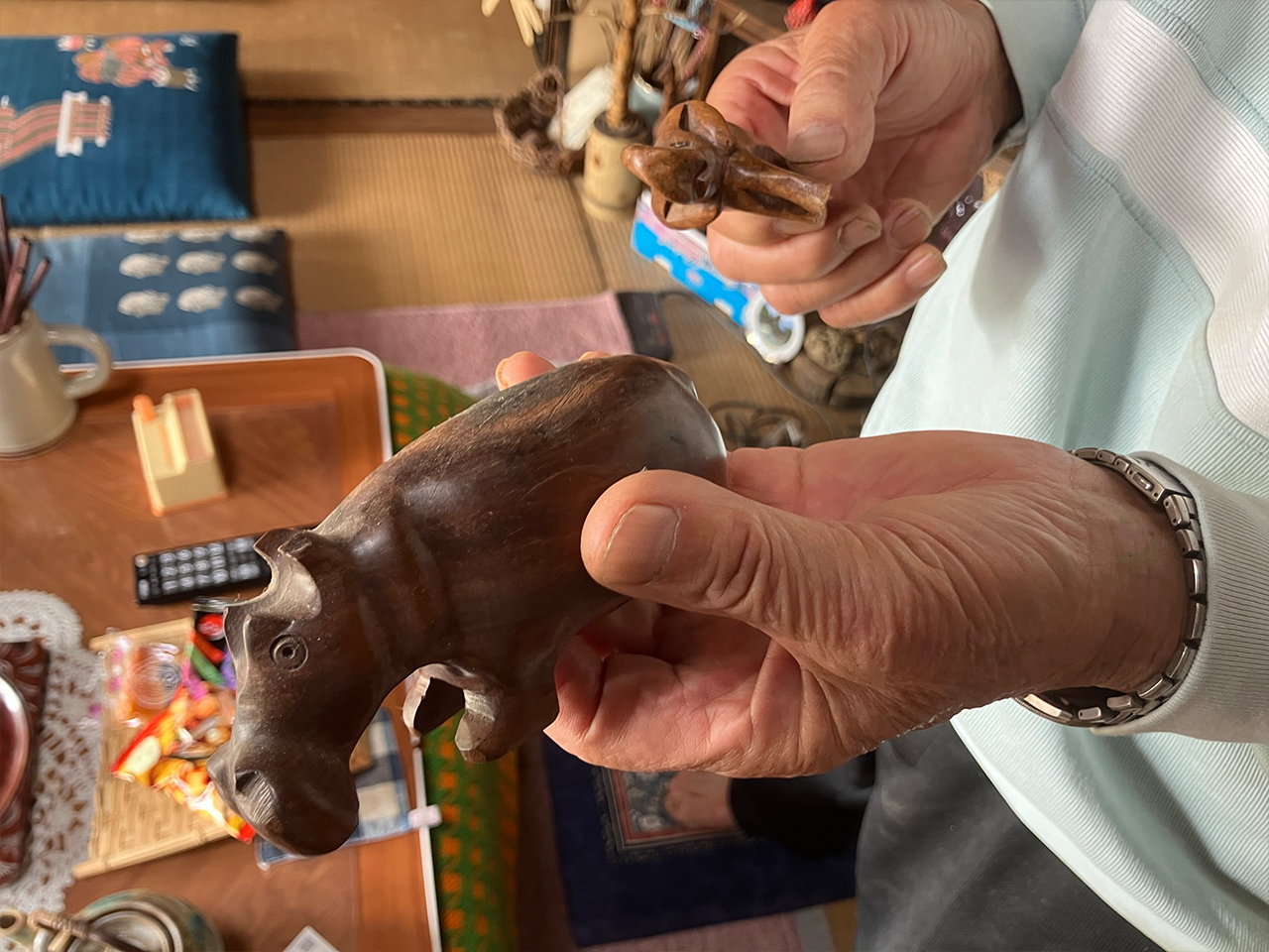 食後はお父さんが趣味でもあった海外旅行の話を聞いたり現地で購入したお土産を紹介していただきました。